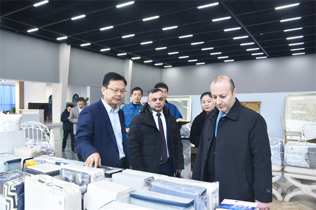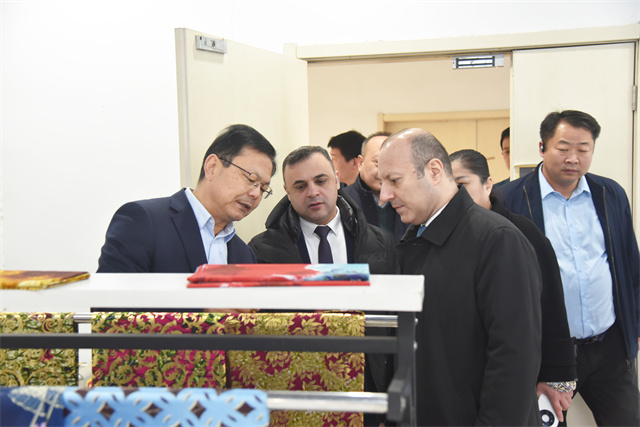 特穆?tīng)?middot;納迪羅格魯公使一行參觀了公司智云中心、檢測(cè)中心、綜合辦公區(qū)、服裝面料公司、花布公司、家紡公司、創(chuàng)意中心、研究院、花布車間、面料車間、家紡車間、家紡成品車間、服裝車間等區(qū)域,高度贊賞了公司在科技創(chuàng)新、環(huán)保實(shí)踐、產(chǎn)品多元化、產(chǎn)業(yè)布局等方面的成就。